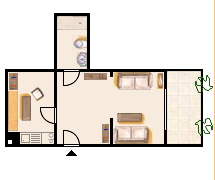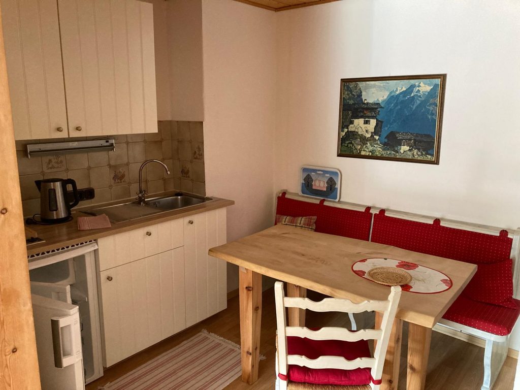 Das Appartement ist ein Wohn-/Schlafzimmer im 1. OG mit überdachtem Südbalkon. Die Betten befinden sich in einer Schrankwand zum herausklappen und einem Sofa (evtl. für eine dritte Person oder evtl. zwei Kinder) und eine komplett eingerichtete Kochnische mit gemütlicher Essecke sowie Dusche/WC. Wäsche und Geschirr sind vorhanden.